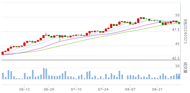 今日(2023年08月31日,周四)中國(guó)繭絲綢交易市場(chǎng)生絲指數(shù)下跌0.26%收于4879.29點(diǎn),本月生絲指數(shù)上漲2.78%。B絲(商檢4A級(jí)生絲):230925合約下跌0.12萬(wàn)元報(bào)收于48.93萬(wàn)元;240325合約下跌0.24萬(wàn)元報(bào)收于48.84萬(wàn)元;240925合約下跌0.21萬(wàn)元報(bào)收于47.97萬(wàn)元。