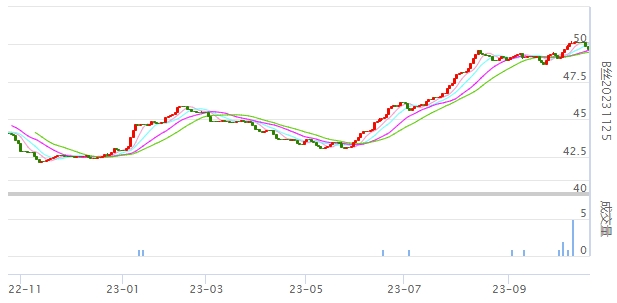 今日(2023年10月25日,周三)中國繭絲綢交易市場生絲指數(shù)下跌0.53%收于4950.79點。B絲(商檢4A級生絲):231125合約下跌0.21萬元報收于49.71萬元;240325合約下跌0.24萬元報收于50.07萬元;240925合約下跌0.21萬元報收于48.18萬元。
