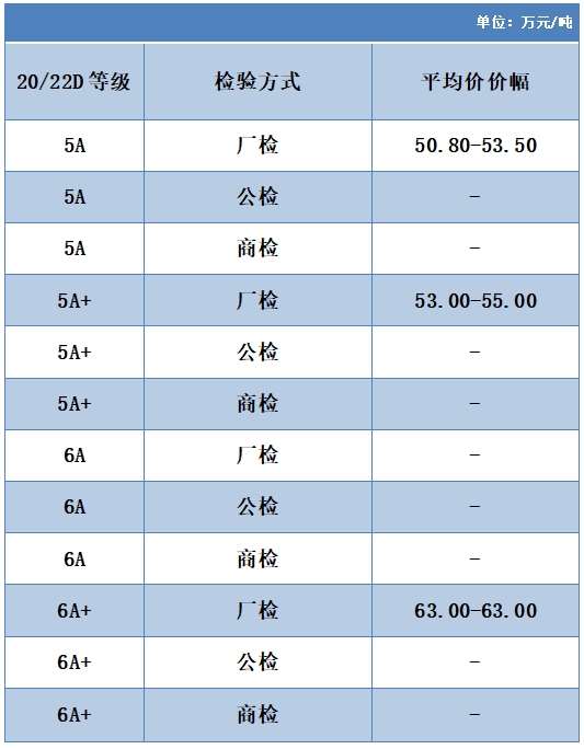 注:本周廠檢6A+生絲成交價格為少量特殊定制規(guī)格。
