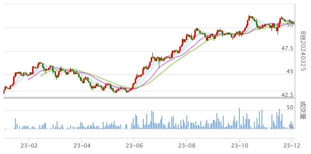 今日(2023年12月05日,周二)中國繭絲綢交易市場生絲指數(shù)微跌0.06%收于4968.62點。B絲(商檢4A級生絲):231225合約下跌0.03萬元報收于49.71萬元;240325合約下跌0.09萬元報收于50.46萬元;240925合約報平收于49.11萬元。