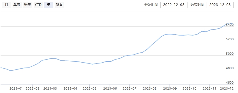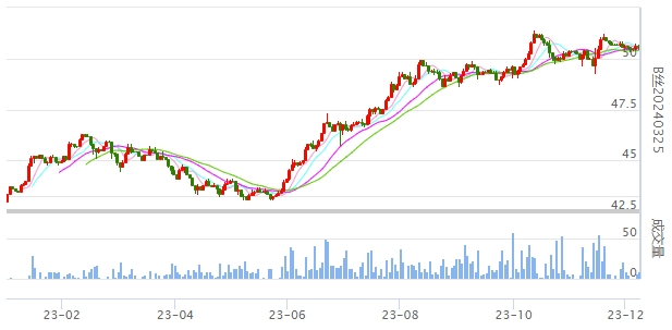 今日(2023年12月08日,周五)中國(guó)繭絲綢交易市場(chǎng)生絲指數(shù)下跌0.17%收于4964.13點(diǎn),本周生絲指數(shù)下跌0.21%。B絲(商檢4A級(jí)生絲):231225合約報(bào)平收于49.68萬(wàn)元;240325合約下跌0.06萬(wàn)元報(bào)收于50.55萬(wàn)元;240925合約下跌0.15萬(wàn)元報(bào)收于49.11萬(wàn)元。
