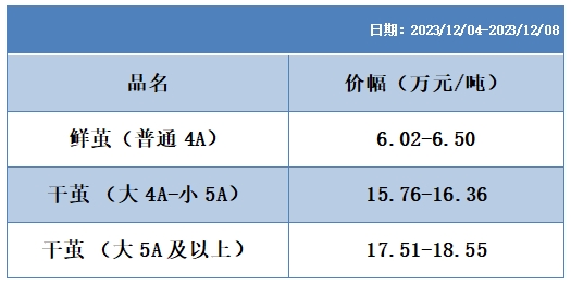 根據(jù)本周蠶繭報(bào)價(jià)按照指數(shù)方案形成的基準(zhǔn)品價(jià)格區(qū)間
