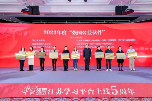 12月30日,由新華日報、“學習強國”江蘇學習平臺、“新江蘇”、中國江蘇網(wǎng)主辦的“學習強國”江蘇學習平臺上線5周年活動在南京舉行。江蘇省政協(xié)副主席姚曉東出席,并為2023年度強國公益伙伴授牌。集團黨委副書記陳萬寧應邀參加活動。