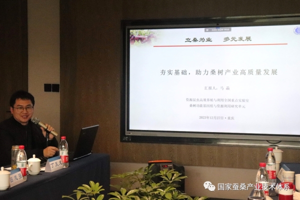 為有效推進(jìn)國家蠶桑產(chǎn)業(yè)技術(shù)體系“桑樹遺傳改良與栽培研究室”和“機(jī)械化研究室”承擔(dān)的“十四五”各項工作,兩研究室于2023年12月26-28日在重慶北碚聯(lián)合召開了2023年工作總結(jié)交流會。出席會議的有國家蠶桑產(chǎn)業(yè)技術(shù)體系首任首席科學(xué)家向仲懷院士、現(xiàn)任首席科學(xué)家代方銀教授,桑樹產(chǎn)業(yè)國家創(chuàng)新聯(lián)盟理事長何寧佳教授,體系桑樹研究室主任趙愛春教授、機(jī)械化研究室主任張劍飛研究員,兩室全體崗位科學(xué)家及部分團(tuán)隊成員,和田綜合試驗站站長及團(tuán)隊成員,以及資源昆蟲高效養(yǎng)殖與利用全國重點實驗室桑樹團(tuán)隊馬赑副教授等師生代表,共計30余人。