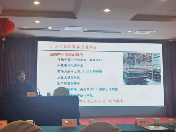 宋占華教授做《桑樹生產(chǎn)機(jī)械化技術(shù)與裝備》為題的報(bào)告,從蠶桑生產(chǎn)機(jī)械化的趨勢(shì)與必要性入手,詳細(xì)介紹了適于桑樹育苗、播種、除草、翻耕與收獲的機(jī)械化裝備和技術(shù),強(qiáng)調(diào)蠶桑機(jī)械化裝備研發(fā)必須是機(jī)械與農(nóng)藝的相互融合。張升祥副教授以人工飼料為主題,介紹了人工飼料適應(yīng)性蠶品種選育、小蠶人工飼料育技術(shù),對(duì)未來專業(yè)戶生產(chǎn)模式和家蠶人工飼料育存在的問題進(jìn)行了分析。