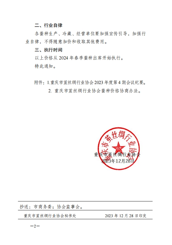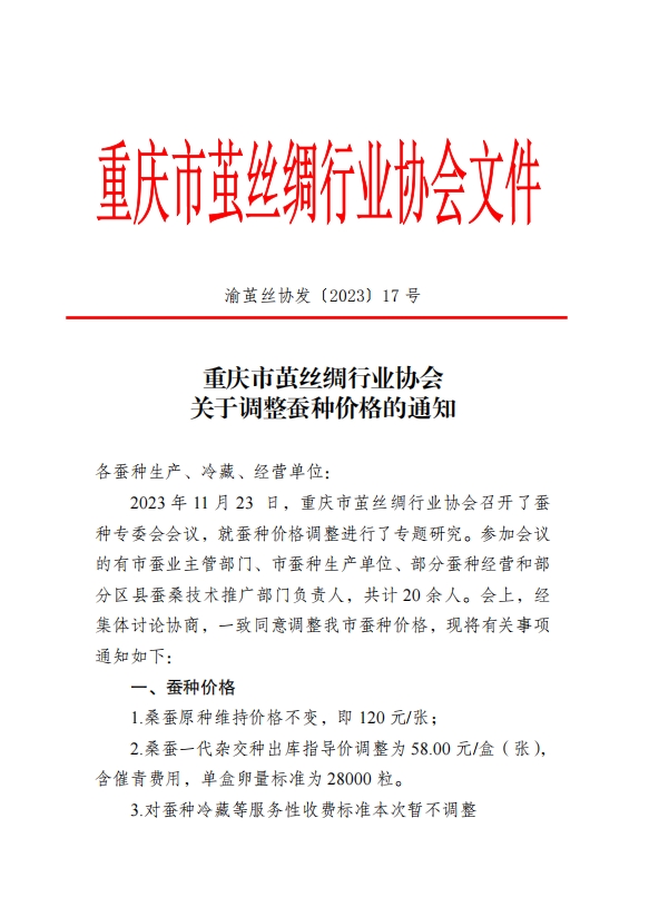 行業(yè)新聞丨重慶市繭絲綢行業(yè)協(xié)會關(guān)于調(diào)整蠶種價格的通知