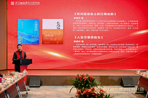 浙江省絲綢文化研究會秘書長滕俊楷向會議作了工作報告;浙江省絲綢文化研究會副會長、國際絲綢聯(lián)盟秘書長、《絲綢》雜志總編輯李啟正介紹了2023 年度絲綢文化事件推選情況。