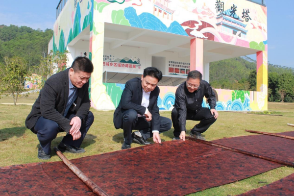 1月9日上午,廣東省陽春市委副書記周開取帶領(lǐng)市“百千萬工程”指揮辦相關(guān)人員到合水鎮(zhèn)調(diào)研香云紗“非遺”產(chǎn)業(yè)典型案例培育創(chuàng)建工作。