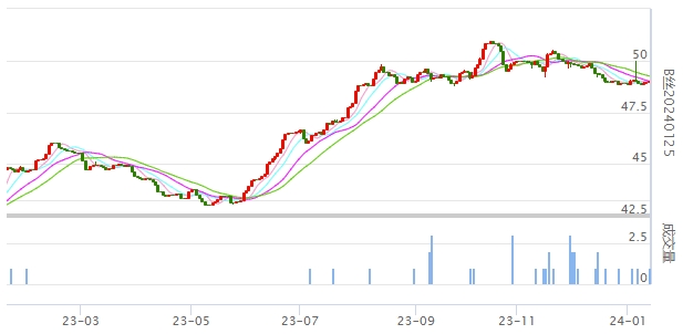 今日(2024年01月12日,周五)中國繭絲綢交易市場生絲指數(shù)上漲0.18%收于4871.01點(diǎn),本周生絲指數(shù)微跌0.04%。B絲(商檢4A級生絲):240125合約上漲0.06萬元收于49.02萬元;240325合約上漲0.06萬元收于49.35萬元;240925合約上漲0.15萬元收于48.12萬元。