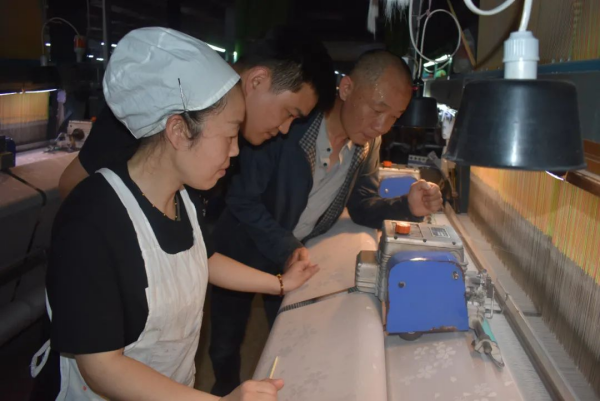 根據(jù)生產(chǎn)實(shí)際需要,蘭恒亮嘗試在制作和服綢的織機(jī)上加裝勾邊機(jī),滿足客戶對(duì)和服綢凈邊的要求??棛C(jī)上有鋼扣,工作中不停地運(yùn)動(dòng),勾邊機(jī)的鉤子同樣在不停運(yùn)動(dòng),怎么樣讓它們不碰著,又能讓絲線鎖邊順暢,不出現(xiàn)毛茬,需要進(jìn)行大量的機(jī)械設(shè)備調(diào)試工作。為了找到一個(gè)完美的組織和勾邊機(jī)配合使用來(lái)達(dá)到凈邊效果,蘭恒亮查閱了大量書籍,反復(fù)找原理,多方搞推演。那段日子里,他朝思夜想,有時(shí)候夜里睡覺的時(shí)候突然產(chǎn)生靈感,生怕第二天忘記,不顧倦意便連夜起身,找出紙筆隨手畫出來(lái),第二天直奔車間進(jìn)行測(cè)驗(yàn)。最終經(jīng)過(guò)上千次的研究調(diào)試,勾邊機(jī)組織得到應(yīng)用,京九絲綢成為國(guó)內(nèi)唯一一家用劍桿織機(jī)織造凈邊和服綢的廠家,這項(xiàng)技術(shù)的突破,比有梭織機(jī)織造和服綢至少提高了六倍效率。