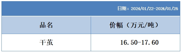 本周高品位生絲協(xié)作單位成交價(jià)格區(qū)間