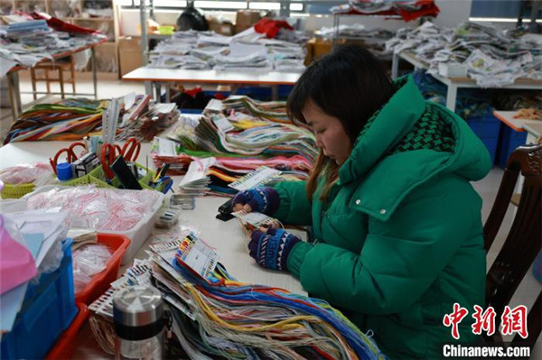 1月25日,一名工人在打包十字繡產(chǎn)品