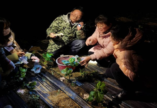 1月26日夜間,技術(shù)人員在城關(guān)鎮(zhèn)田間調(diào)查蟲害情況