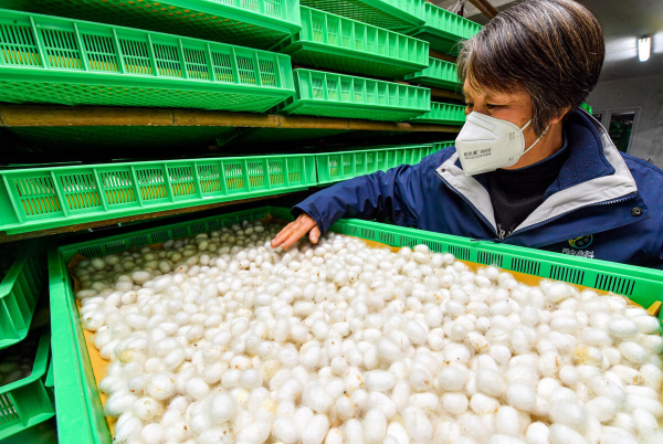 紹興嵊州陌桑高科股份有限公司培育的批量原蠶繭,在該市蠶種場(chǎng)培育2024年首批新蠶種。 據(jù)悉,紹興嵊州陌桑高科股份有限公司同浙江省農(nóng)科院等多個(gè)科研機(jī)構(gòu)合作,經(jīng)多年潛心研發(fā),借助人工智能,引進(jìn)專業(yè)人才,實(shí)施科技攻關(guān),打破了江南養(yǎng)蠶的季節(jié)性,使工廠化養(yǎng)蠶實(shí)現(xiàn)全年無(wú)休季,在新時(shí)代用現(xiàn)代科技新路為我國(guó)新絲綢產(chǎn)業(yè)發(fā)展開(kāi)辟新道路。