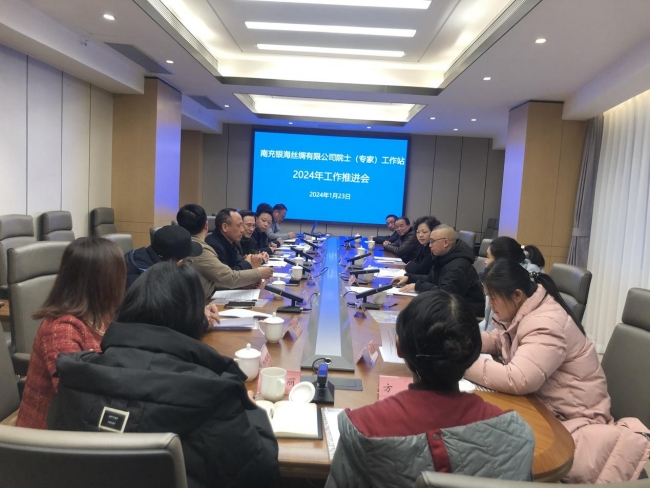 2023年1月23日,南充銀海絲綢有限公司院士(專家)工作站2024年工作推進(jìn)會(huì)在南充召開。中國(guó)絲綢協(xié)會(huì)特邀副會(huì)長(zhǎng)、四川省絲綢協(xié)會(huì)名譽(yù)會(huì)長(zhǎng)、銀海絲綢院士(專家)工作站首席專家陳祥平,南充市科協(xié)黨組成員、副主席尹曉輝,四川省農(nóng)業(yè)科學(xué)院蠶業(yè)研究所黨委書記張友洪,南充市科協(xié)學(xué)會(huì)部部長(zhǎng)董媛媛,南充市嘉陵區(qū)科協(xié)副主席全國(guó)平出席會(huì)議,來自四川省絲綢科學(xué)研究院、四川省農(nóng)科院蠶業(yè)研究所以及南充銀海絲綢有限公司的專家和相關(guān)人員共20余人參加了推進(jìn)會(huì),會(huì)議由陳祥平主持。