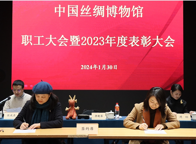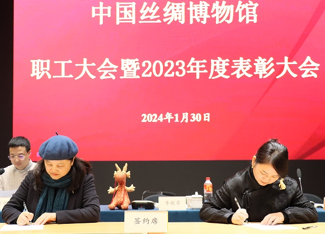 2024年1月30日下午,中國絲綢博物館舉行全館職工大會暨2023年度總結(jié)表彰會。館長季曉芬,副館長周旸、張成名出席會議。會議由張成名主持,全館員工及退休同志代表參會。