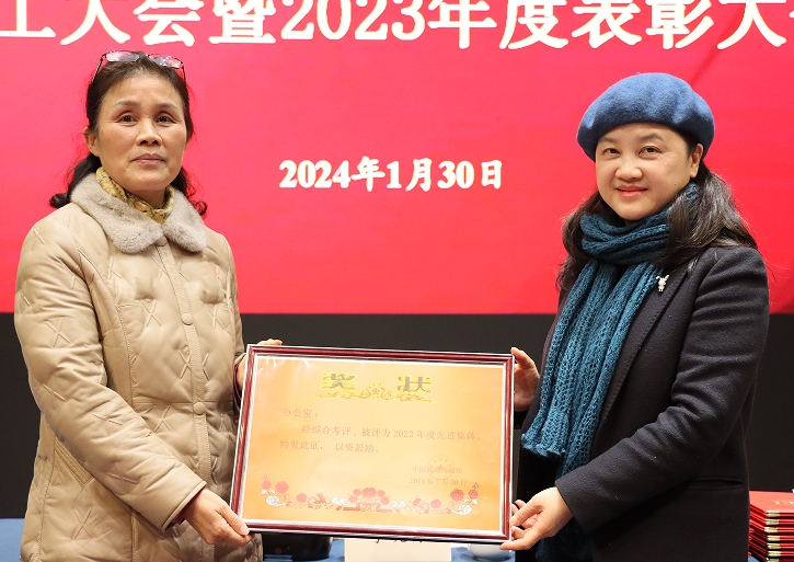會議聽取了2023年全館工作報(bào)告和黨建述職。從堅(jiān)持國際視野和國家站位、突出特色和鞏固行業(yè)領(lǐng)先優(yōu)勢、展現(xiàn)擔(dān)當(dāng)和投身文化浙江建設(shè)等方面系統(tǒng)總結(jié)了我館年度工作亮點(diǎn)成果,從主題教育、黨建引領(lǐng)、黨風(fēng)廉政、規(guī)范管理等方面詳細(xì)報(bào)告了黨建工作完成情況和特色做法。頒獎(jiǎng)環(huán)節(jié),季曉芬為獲得先進(jìn)集體的辦公室頒發(fā)榮譽(yù)獎(jiǎng)牌。