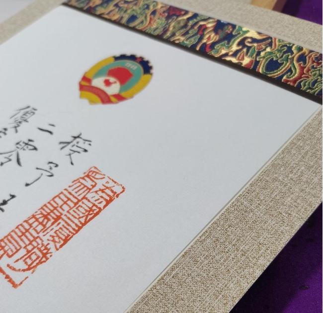 優(yōu)秀履職委員現(xiàn)場獲得了一份特別的“紀(jì)念”——由四川省非遺公共品牌“川工蜀藝”與青羊蜀錦技藝保護(hù)單位“成都尋錦處”特別制作的蜀錦獎(jiǎng)狀。獎(jiǎng)狀上的蜀錦紋樣是著名的國寶五星出東方利中國錦,蜀錦上裝裱了來自四川夾江的竹宣,并由我省知名書法家手書委員名字和表揚(yáng)文字,整體設(shè)計(jì)既有中國韻味,又具四川特色。