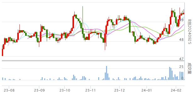 今日(2024年02月19日,周一)中國(guó)繭絲綢交易市場(chǎng)生絲指數(shù)上漲0.34%收于5083.50點(diǎn)。B絲(商檢4A級(jí)生絲):240325合約上漲0.12萬(wàn)元報(bào)收于51.87萬(wàn)元;240925合約上漲0.06萬(wàn)元報(bào)收于49.47萬(wàn)元;250325合約報(bào)平收于49.53萬(wàn)元。