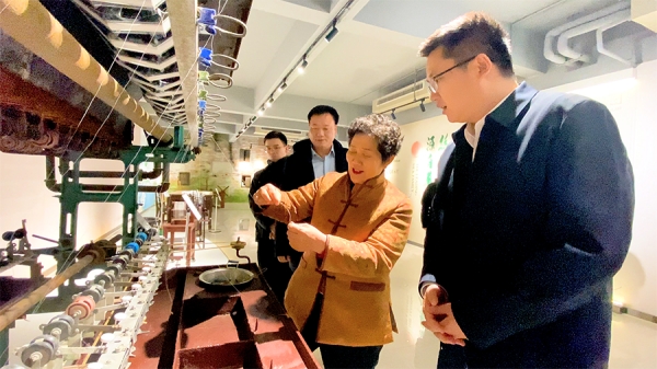 陳宇書記一行邊走邊聽,先后到公司展廳、繅絲博物館、華佳時尚館、紅石榴家園及桑羅品牌展廳參觀。