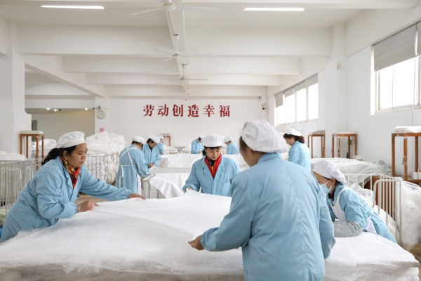 人勤春來早。春節(jié)小長假剛過,太湖雪位于震澤鎮(zhèn)的各條生產(chǎn)線火熱開工,工人們加足馬力趕生產(chǎn),車間內(nèi)呈現(xiàn)一派“熱辣滾燙”的繁忙景象。