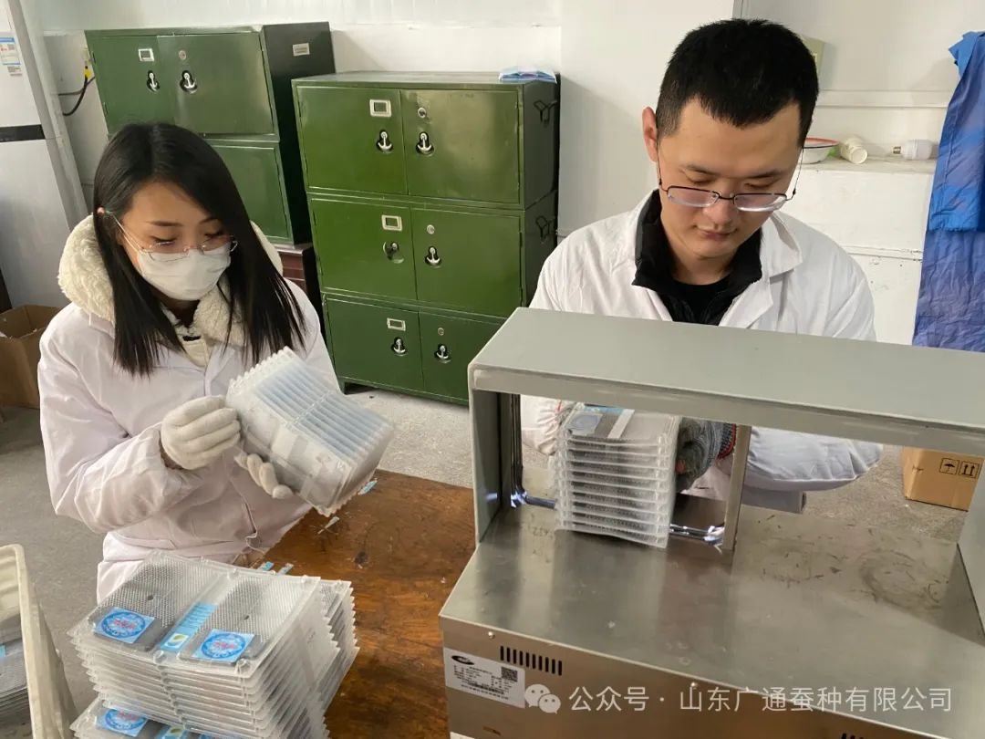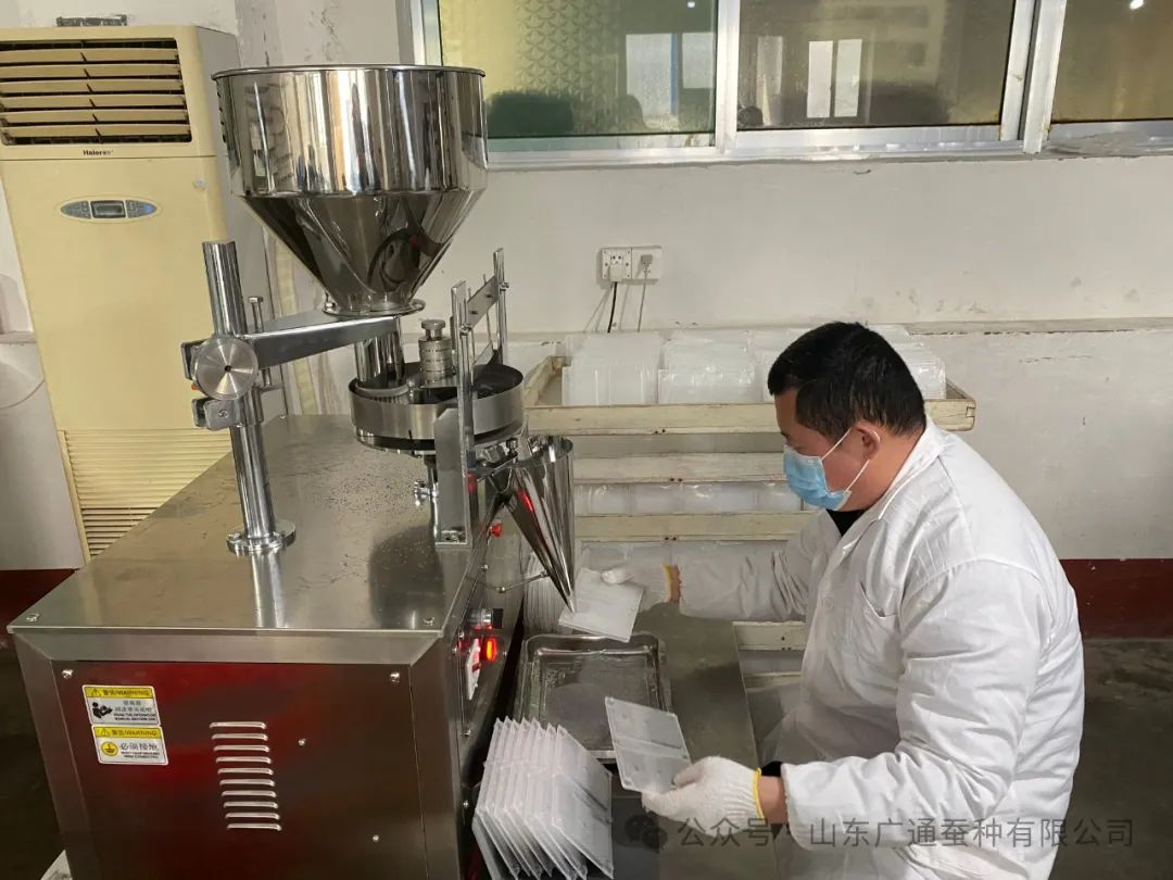 “守得種子千萬顆,灑向人間不論親”。龍年春節(jié)開工伊始,廣通集團即開始準備春季出口蠶種。在出口蠶種整理車間內,員工們正按工序分工,協(xié)作配合,精細操作,搶趕進度,呈現(xiàn)一片緊張繁忙景象。一粒粒包含廣通育種員工辛勤汗水的蠶種,經整理、裝盒、包裝,即將發(fā)往國外蠶種客戶,為國外蠶農帶去春日豐收的希望。
