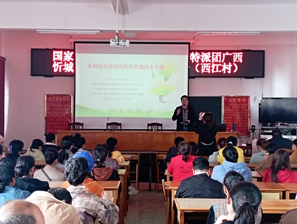 在紅渡鎮(zhèn)西江村培訓(xùn)會(huì)上,羅平作桑樹(shù)病蟲(chóng)害綠色防控關(guān)鍵技術(shù)專(zhuān)題培訓(xùn),與參訓(xùn)學(xué)員現(xiàn)場(chǎng)互動(dòng)、答疑解惑,贏得蠶農(nóng)群眾的一致好評(píng)。參加培訓(xùn)的群眾潘敏雅表示“這樣生動(dòng)活潑、通俗易懂的培訓(xùn)會(huì)效果非常好,我們能夠?qū)W到科學(xué)管理桑樹(shù)的方法,希望今后能夠多辦、常辦。”
