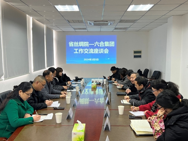 3月5日,四川省絲綢科學(xué)研究院(以下簡(jiǎn)稱省絲綢院)與四川南充六合(集團(tuán))有限責(zé)任公司(以下簡(jiǎn)稱六合集團(tuán))工作交流座談會(huì)在省絲綢院召開(kāi),雙方就近年來(lái)各自開(kāi)展的工作、取得的成效、存在的短板、努力的方向等作了深入交流,就絲綢行業(yè)國(guó)有企業(yè)之間強(qiáng)強(qiáng)聯(lián)合、共同推動(dòng)科研項(xiàng)目、生產(chǎn)技術(shù)、產(chǎn)品質(zhì)量、裝備升級(jí)、經(jīng)營(yíng)貿(mào)易、文旅融合、產(chǎn)業(yè)規(guī)劃等企業(yè)、行業(yè)發(fā)展達(dá)成一致意見(jiàn)。六合集團(tuán)董事長(zhǎng)任立榮、總經(jīng)理林森一行7人,省絲綢院黨委書(shū)記、董事長(zhǎng)程明及班子成員、各研究中心負(fù)責(zé)人、相關(guān)技術(shù)專家等參加會(huì)議。