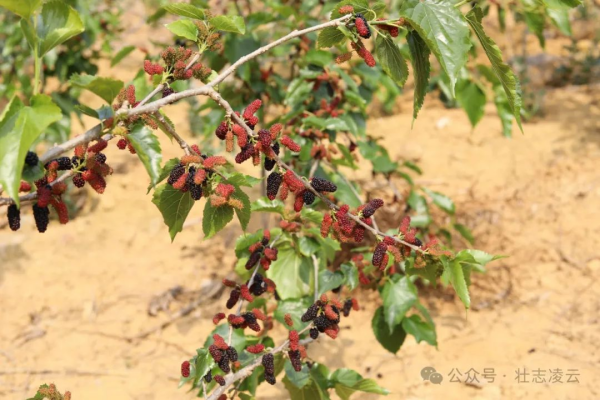 陽春三月,草長鶯飛。由于天氣偏暖且管護得當,廣西凌云縣的果桑已提早開花結(jié)果,開始進入成熟階段。