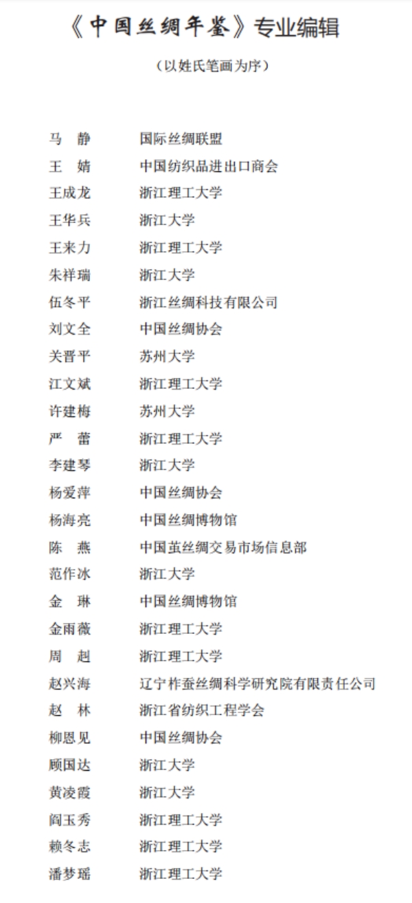 《中國絲綢年鑒》(2021/2022年版)正式出版發(fā)行。《中國絲綢年鑒》是經(jīng)國家新聞出版署批準,由國家繭絲綢協(xié)調(diào)辦公室支持,中國絲綢協(xié)會主辦,浙江理工大學聯(lián)辦,《中國絲綢年鑒》編輯部編輯出版的行業(yè)性、資料性實用工具書刊,同時具有國家繭絲綢行業(yè)公報和繭絲綢行業(yè)編年史冊的性質?!吨袊z綢年鑒》的宗旨是全面、系統(tǒng)、準確地記錄和反映中國繭絲綢行業(yè)的發(fā)展歷程,為中國絲綢行業(yè)的改革、開放和現(xiàn)代化建設服務。