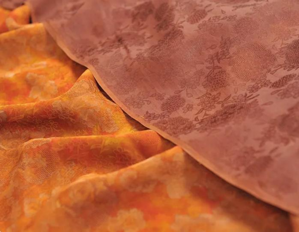 紅云紗為絲綢面料,是世界紡織品中少數(shù)用純植物染料染色的面料,經(jīng)過匠人的精心織造和染色,形成了一種獨(dú)特的織花工藝,被譽(yù)為紡織界的“軟黃金”。