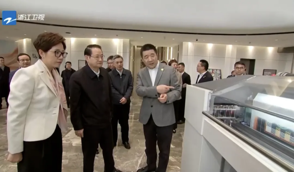 易書記在萬(wàn)事利集團(tuán)董事長(zhǎng)屠紅燕、萬(wàn)事利絲綢董事長(zhǎng)李建華的講解下,全程觀摩了絲巾從AI設(shè)計(jì)定制到一體機(jī)印染生產(chǎn)的全過程,他對(duì)萬(wàn)事利利用新技術(shù)改造傳統(tǒng)印花工藝,實(shí)現(xiàn)了紡織零污染給予高度肯定:“一體機(jī)是顛覆性的技術(shù)革命,是紡織行業(yè)的新質(zhì)生產(chǎn)力?!?/p>