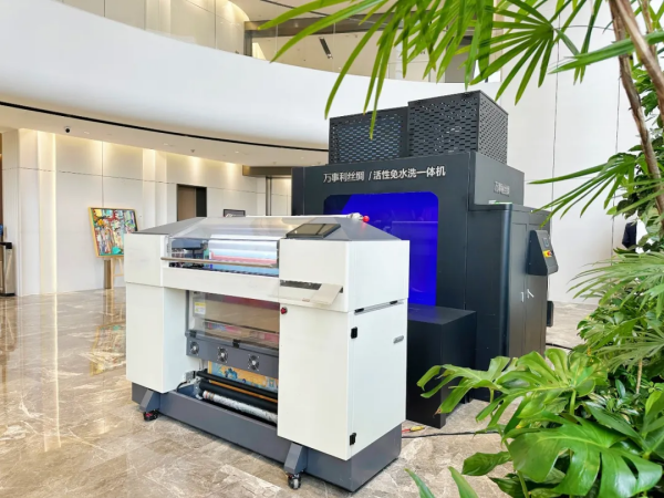 在一樓大廳,萬(wàn)事利打造的“從設(shè)計(jì)到生產(chǎn)最快半小時(shí)拿到實(shí)物”的智能絲綢體驗(yàn)區(qū)吸引了易書記的關(guān)注。這背后是萬(wàn)事利絲綢自主研發(fā)的兩大核心科技:AIGC設(shè)計(jì)大模型與無(wú)水印染一體機(jī)。AIGC設(shè)計(jì)大模型,擁有超過50萬(wàn)花型數(shù)據(jù)庫(kù),300多種圖像算法,可以為全球80億人每人設(shè)計(jì)10萬(wàn)條絲巾不重樣,人人都可以成為絲巾設(shè)計(jì)師;無(wú)水印染一體機(jī),解決紡織印染污水世界難題,體積小、速度快、無(wú)污染,讓印染廠可以開在門店或者辦公室,打印絲巾就像打印紙一樣簡(jiǎn)單。
