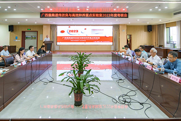 根據(jù)《自治區(qū)科技廳關(guān)于組織開(kāi)展重點(diǎn)實(shí)驗(yàn)室2023年度績(jī)效評(píng)價(jià)工作的通知》(桂科基字〔2024〕5號(hào))的要求, 3月26日上午,廣西蠶桑遺傳改良與高效種養(yǎng)重點(diǎn)實(shí)驗(yàn)室2023年度考核會(huì)在廣西蠶業(yè)技術(shù)推廣站召開(kāi)。原國(guó)家蠶桑產(chǎn)業(yè)技術(shù)體系首席科學(xué)家魯成教授、江蘇科技大學(xué)生物技術(shù)學(xué)院副院長(zhǎng)沈興家研究員等區(qū)內(nèi)外7名考核專(zhuān)家、實(shí)驗(yàn)室主任及實(shí)驗(yàn)室部分固定人員等38人參會(huì)。