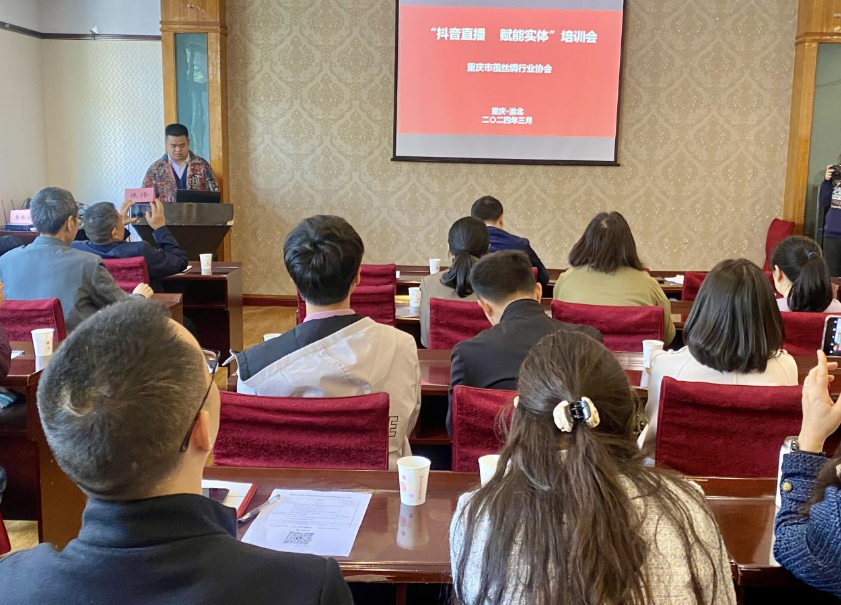 為進(jìn)一步深化重慶市繭絲綢行業(yè)協(xié)會(huì)品牌建設(shè),提高該市繭絲綢行業(yè)企業(yè)品牌建設(shè)水平,助力該市蠶桑繭絲綢企業(yè)通過新媒體直播形式展示企業(yè)形象和宣傳產(chǎn)品。3月28日上午,“華龍網(wǎng)企業(yè)互聯(lián)網(wǎng)品牌‘美顏’計(jì)劃”受邀走進(jìn)由重慶市繭絲綢行業(yè)協(xié)會(huì)主辦的“聚焦抖音直播 賦能實(shí)體經(jīng)濟(jì)”培訓(xùn)會(huì),開展我市蠶桑繭絲綢行業(yè)企業(yè)品牌及產(chǎn)品宣傳、培訓(xùn)。來自重慶全市蠶桑技術(shù)推廣,蠶種生產(chǎn),蠶繭收購、經(jīng)營,絲綢加工工業(yè)企(事)業(yè)單位相關(guān)統(tǒng)計(jì)人員、部門負(fù)責(zé)人及協(xié)會(huì)會(huì)員單位信息工作人員近60人參加培訓(xùn)會(huì)議。