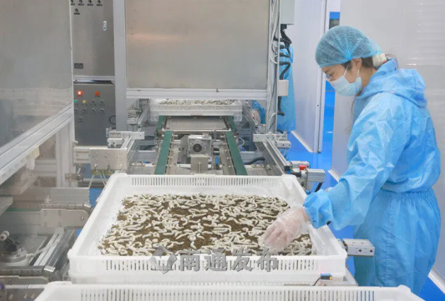 走進(jìn)集團(tuán)10萬(wàn)級(jí)凈化車(chē)間,一批批不同生長(zhǎng)階段的蠶被機(jī)械臂置于飼養(yǎng)盤(pán)中,盤(pán)底鋪有泥巴狀軟綿綿的專(zhuān)用飼料,整個(gè)恒溫恒濕無(wú)菌的“大宅子”里,機(jī)器人替代了“蠶娘”,飼養(yǎng)流程都通過(guò)總控制臺(tái)自動(dòng)運(yùn)行,自動(dòng)喂料、上蔟、采繭設(shè)備協(xié)同作業(yè)。儲(chǔ)呈平表示,蠶絲蛋白骨釘是要植入人體的,原料安全十分重要,不能有半點(diǎn)差池。