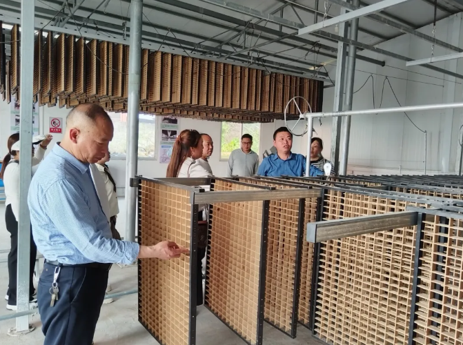 4月1日下午,貴州省農(nóng)科院蠶業(yè)所余文中主任5人及鳳岡縣金衣玉絲蠶桑種植專業(yè)合作社5人蒞臨林勝堂學習先進技術(shù)及裝備。公司負責人黃副總陪同考察團參觀了林勝堂省力化蠶具設(shè)備,并做了簡要介紹。