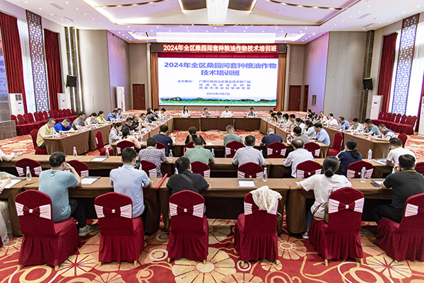 為提升全區(qū)蠶桑產(chǎn)業(yè)技術(shù)骨干專業(yè)技能,加快"桑+糧"間套種模式示范推廣應(yīng)用,推動(dòng)蠶桑產(chǎn)業(yè)提質(zhì)增效高質(zhì)量發(fā)展。4月2日,廣西蠶業(yè)技術(shù)推廣站在河池市舉辦2024年全區(qū)桑園間套種糧油作物技術(shù)培訓(xùn)班。廣西蠶業(yè)技術(shù)推廣站負(fù)責(zé)人,河池市農(nóng)業(yè)農(nóng)村局、河池市農(nóng)業(yè)科學(xué)研究所相關(guān)人員、全區(qū)5個(gè)蠶桑主產(chǎn)市蠶業(yè)站、23個(gè)蠶桑主產(chǎn)縣(市、區(qū))蠶業(yè)部門負(fù)責(zé)人,廣西桑蠶產(chǎn)業(yè)創(chuàng)新團(tuán)隊(duì)功能專家、綜合試驗(yàn)站站長(zhǎng),及自治區(qū)蠶業(yè)技術(shù)推廣站相關(guān)人員共70人參加培訓(xùn)。