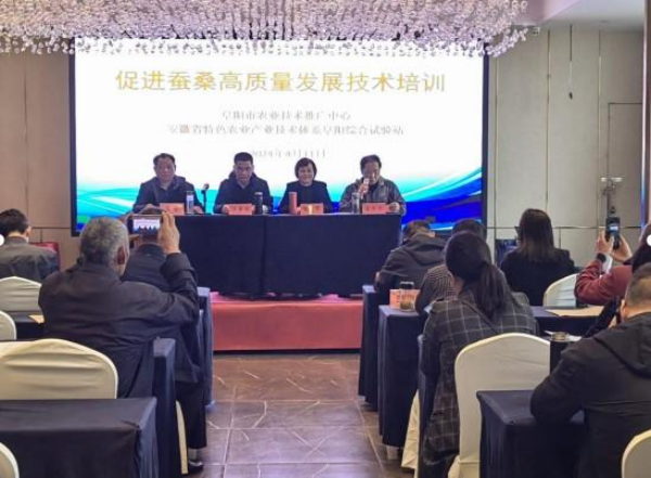 為提高阜陽市蠶桑生產(chǎn)大戶和技術(shù)人員的專業(yè)水平,做好春季蠶桑生產(chǎn),應(yīng)阜陽市農(nóng)業(yè)技術(shù)推廣中心邀請,2024年4月11日,安徽省特色農(nóng)業(yè)產(chǎn)業(yè)技術(shù)體系首席專家、省農(nóng)科院蠶桑研究所副所長汪泰初研究員以及安徽農(nóng)業(yè)大學(xué)生命科學(xué)學(xué)院徐家萍教授赴阜陽進(jìn)行專業(yè)技術(shù)授課。阜陽市農(nóng)業(yè)技術(shù)推廣中心蠶桑科科長、安徽省特色農(nóng)業(yè)產(chǎn)業(yè)技術(shù)體系阜陽綜合試驗(yàn)站站長孟慶杰主持,阜陽市農(nóng)業(yè)技術(shù)推廣中心副主任程偉到會并作動員講話。各縣(市、區(qū))農(nóng)業(yè)技術(shù)推廣中心蠶桑負(fù)責(zé)人、技術(shù)骨干和蠶桑大戶50人參加培訓(xùn)。