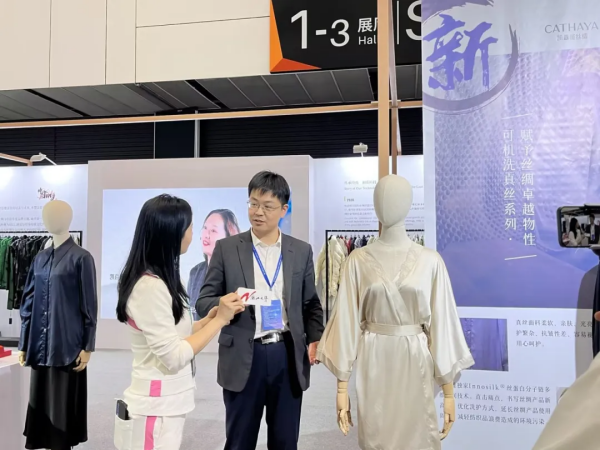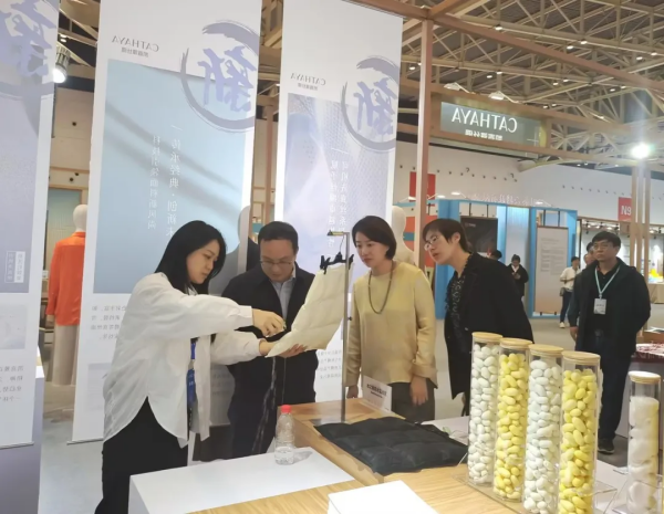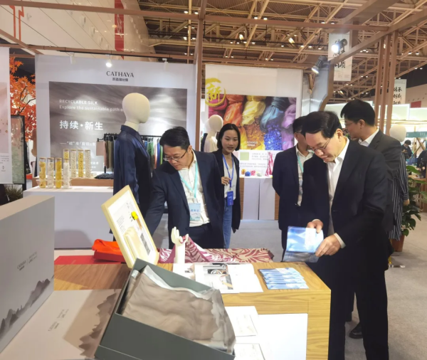 本次參展還展出了亞運(yùn)“國(guó)賓壹號(hào)”絲綢禮此湖勾留系列產(chǎn)品,“水之舞”防水防污面料、“絲耐賽絲”專業(yè)級(jí)防曬真絲等功能性產(chǎn)品,并對(duì)可回收蠶絲技術(shù)與產(chǎn)業(yè)化、植物染絲綢技術(shù)與產(chǎn)業(yè)化做了重點(diǎn)展示,向參觀者傳遞環(huán)保與可持續(xù)發(fā)展的重要理念,彰顯凱喜雅的社會(huì)責(zé)任與擔(dān)當(dāng)。