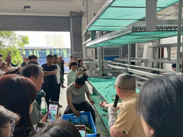 本次培訓(xùn)分為參觀、實(shí)操、講解、交流四個(gè)方面內(nèi)容。公司技術(shù)負(fù)責(zé)人全程進(jìn)行了講解、培訓(xùn)和答疑。在公司制造測試中心,全體學(xué)員參觀了桑葉飼育小蠶、中蠶和大蠶設(shè)備,觀摩了新型智慧桑蠶養(yǎng)殖設(shè)備成套系統(tǒng)的運(yùn)行情況。重點(diǎn)參觀和實(shí)操了“全自動(dòng)桑葉育大蠶加量版”成套設(shè)備GTST-NSSM/E23-SSN8、“半自動(dòng)桑葉育大蠶加量版”成套設(shè)備GTST-NSSM/E23(圖2)。