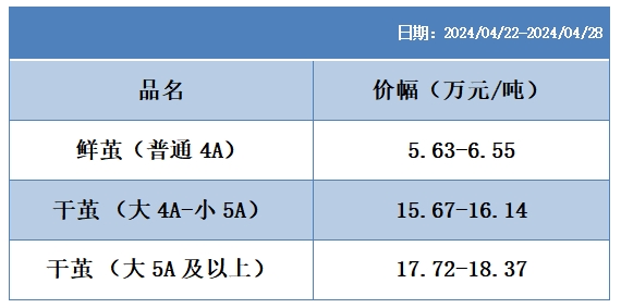 根據(jù)本周蠶繭報(bào)價(jià)按照指數(shù)方案形成的基準(zhǔn)品價(jià)格區(qū)間