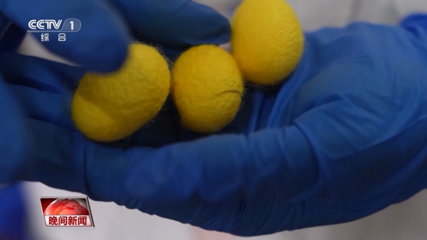 陳玉銀:一般從桑葉吃進去,到最后絲吐出來金黃色,它是有很多基因控制的,所以我們做這個事情還沒那么容易。有時候有的蠶寶寶它金黃色的血液,但它吐出的蠶絲還是白的,所以這是個非常復雜的過程。