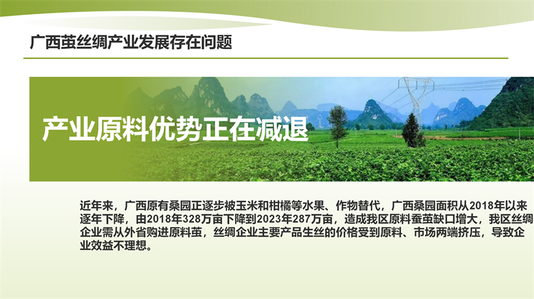 廣西繭絲綢行業(yè)協(xié)會會長賴以軍在2024全國繭絲綢產(chǎn)銷形勢分析會上介紹廣西行業(yè)發(fā)展情況