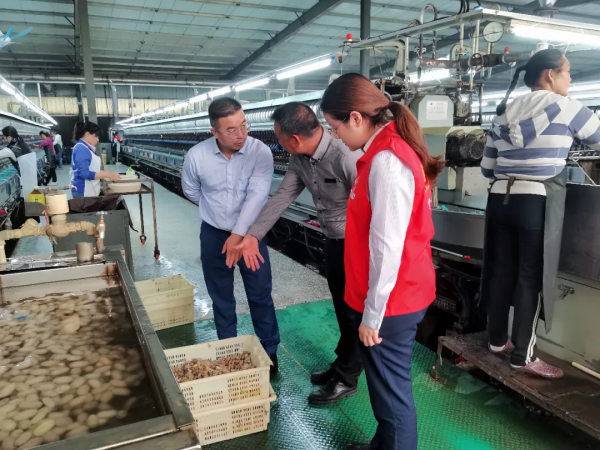 宜州農(nóng)合行董事長朱洲深入廣西嘉鳳絲綢有限公司進行繭絲產(chǎn)業(yè)全流程調(diào)研