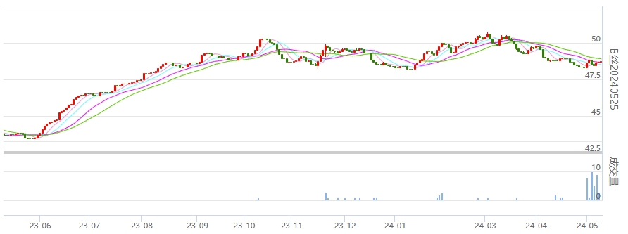 今日(2024年05月11日,周六)中國繭絲綢交易市場生絲指數(shù)上漲0.13%報于4918.63點,本周生絲指數(shù)上漲0.77%。B絲(商檢4A級生絲):240525合約上漲0.03萬元報收于48.75萬元;240925合約上漲0.21萬元報收于49.47萬元;250325合約上漲0.18萬元報收于49.65萬元。