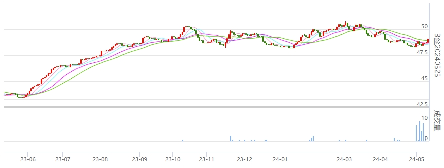 今日(2024年05月13日,周一)中國(guó)繭絲綢交易市場(chǎng)生絲指數(shù)上漲0.60%報(bào)于4948.02點(diǎn)。B絲(商檢4A級(jí)生絲):240525合約上漲0.33萬(wàn)元報(bào)收于49.08萬(wàn)元;240925合約上漲0.36萬(wàn)元報(bào)收于49.83萬(wàn)元;250325合約上漲0.33萬(wàn)元報(bào)收于49.98萬(wàn)元。