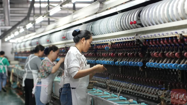 5月10日,在四川新絲路繭絲綢有限公司生產(chǎn)車間里,機(jī)器轟鳴,12組自動(dòng)繅絲生產(chǎn)線飛速運(yùn)轉(zhuǎn),工人們選繭、繅絲、捆絲一派繁忙,企業(yè)正開足馬力忙生產(chǎn),不久之后,這批高質(zhì)量繭絲將通過(guò)上海港出口,運(yùn)往羅馬尼亞、意大利等地。