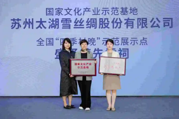 近年來,吳江深入挖掘、繼承、創(chuàng)新中華優(yōu)秀傳統(tǒng)文化,在保護好、傳承好、利用好非物質文化遺產(chǎn)上做文章,推動其創(chuàng)造性轉化和創(chuàng)新性發(fā)展。同時,積極推動文化與旅游的深度融合,打造更多具有地方特色的文化旅游品牌,不斷滿足新時代人民群眾更高層次的文化需求?;顒蝇F(xiàn)場,被命名為新一批國家文化產(chǎn)業(yè)示范基地的蘇州太湖雪絲綢股份有限公司,入選第五批省級非遺代表性項目名錄的絲綿制作技藝(吳江蠶絲被制作技藝)的蘇州慈云蠶絲制品有限公司現(xiàn)場接受頒獎。