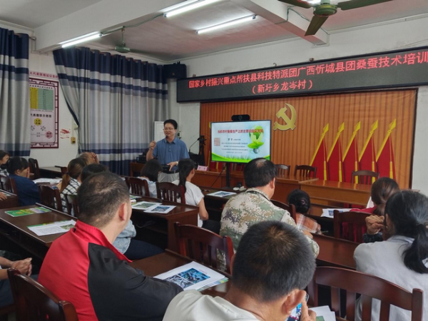 忻城縣是全國(guó)桑蠶第二大縣,現(xiàn)有桑園25.3萬(wàn)畝,全縣有27萬(wàn)余人種桑養(yǎng)蠶。受去年秋季繭價(jià)較高的激勵(lì),農(nóng)戶養(yǎng)蠶積極性高漲。為了促進(jìn)蠶農(nóng)增收,今年開春以來(lái),忻城縣發(fā)揮國(guó)家鄉(xiāng)村振興重點(diǎn)幫扶縣科技特派團(tuán)忻城團(tuán)的作用,統(tǒng)籌協(xié)調(diào)省內(nèi)外的蠶桑專家和本縣鄉(xiāng)村蠶桑產(chǎn)業(yè)科技特派員,深入全縣各蠶桑種養(yǎng)大鎮(zhèn)、養(yǎng)蠶示范基地、田間地頭等,開展技術(shù)培訓(xùn)、現(xiàn)場(chǎng)指導(dǎo)示范,圍繞桑樹主要病蟲害發(fā)生情況及如何保桑促進(jìn)產(chǎn)業(yè)高質(zhì)量發(fā)展等方面開展調(diào)研,同時(shí)積極開展蠶桑資源綜合利用、省力養(yǎng)蠶設(shè)備、桑園病蟲害綠色防控、低產(chǎn)桑園改良等技術(shù)攻關(guān)。截至2024年5月9日止,忻城縣開展蠶桑技術(shù)指導(dǎo)278人次,開展集中科技服務(wù)活動(dòng)6場(chǎng),參與群眾250多名,舉辦蠶桑技術(shù)培訓(xùn)班15期,培訓(xùn)人員705人次,傳幫帶本土人才6人次,進(jìn)行產(chǎn)業(yè)專項(xiàng)調(diào)研3次,引進(jìn)示范蠶桑新品種7個(gè)(對(duì))、新技術(shù)3項(xiàng)、新設(shè)備(產(chǎn)品)3個(gè),開展技術(shù)攻關(guān)2項(xiàng),技術(shù)指導(dǎo)新型經(jīng)營(yíng)主體6家,開展基地建設(shè)2個(gè),累計(jì)服務(wù)覆蓋10個(gè)鄉(xiāng)(鎮(zhèn))、18個(gè)行政村(社區(qū))。